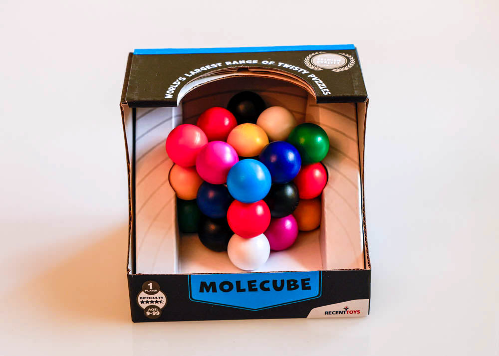 "Molecubes" leichtgängige Drehvorrichtung hat einen befriedigenden Klickmechanismus, den du zweifelsohne genießen wirst, währen du versuchst, jede Farbe auf jede Seite zu bekommen. Drehen & Lösen, Ziel ist es, dass alle 9 Farben auf jeder Seite erscheinen!